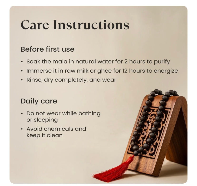 - Its better to remove it before sleep as this mala is cotton threaded, if you thread it with Copper/Silver/Gold you can wear it at all times. When Not to Wear? Yes, to be removed before eating Non-Veg and can be worn again with a gap of 8 to 10 hours after taking head bath, also not to be worn during the funeral/death, can be worn again after taking head bath.